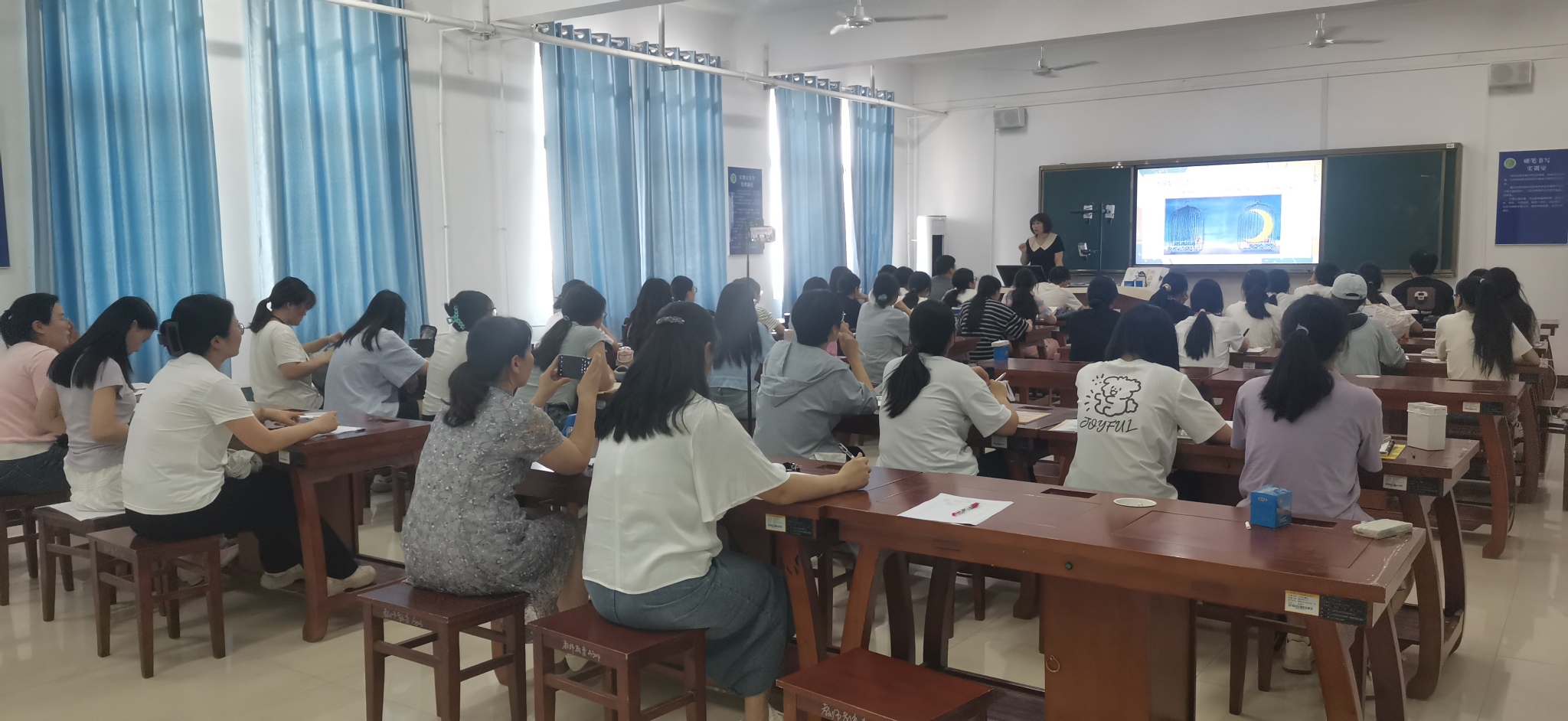 活动当天,精彩纷呈的公开课轮番上演。上午8点,在艺术楼A311教室,任丹丹老师带来《小学班队管理与班主任工作》公开课展示。任老师凭借丰富的教学经验和深厚的专业素养,深入剖析了公司教育与家庭教育之间紧密相连、相辅相成的关系。为使理论知识更加通俗易懂,任丹丹老师精心准备了多个贴合实际的案例,通过视频展示,直观呈现家校合作的重要性、基本渠道及注意事项。为增强课堂互动性,任丹丹组织员工进行角色扮演,模拟与不同类型家长沟通的场景。员工们积极参与,生动演绎了与“溺爱型家长”“放任型家长”等沟通的过程。通过这一环节,员工们不仅掌握了与家长沟通的技巧和原则,还深刻体会到家校合作中沟通的重要性。