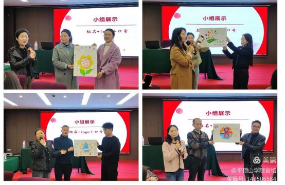 为了让参训学员更好地融入集体,当天晚上班主任曹丽乐老师带领参训教师们举行了“破冰活动”。通过培训内容介绍、口语交际、热身运动、设计小组logo海报等环节,不仅活跃了现场气氛,加强了学员之间的沟通交流,同时也充分展现了参训教师们的文学才华、创造力和团队凝聚力。