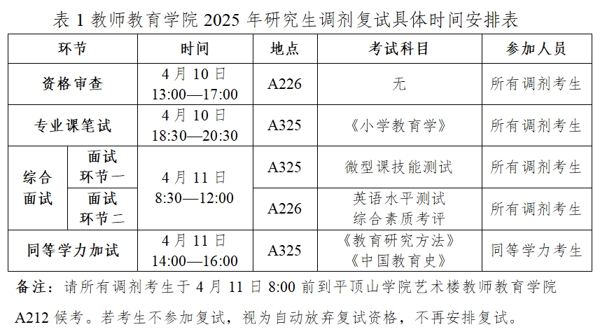 2.调剂考生在接受复试通知后,应在规定的时间参加复试,否则视为自愿放弃复试资格。
