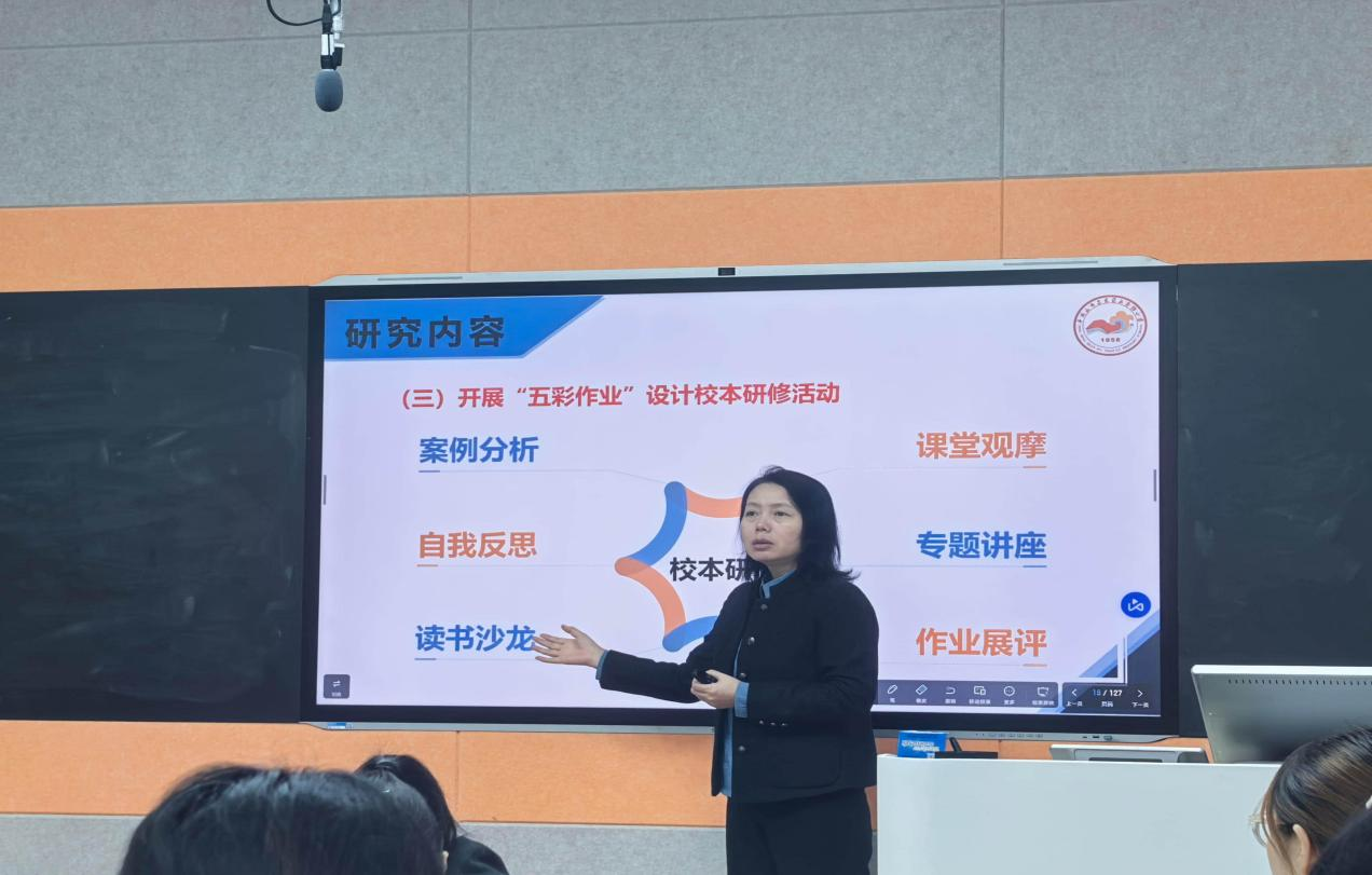 作为一线教育实践者,李慧转导师围绕“五彩作业”设计的核心议题展开授课:从政策支持、存在问题与项目特点切入,结合“员工发展理论、多元智能理论、儿童立场”等教育理念,系统讲解了“五彩作业”的研究目标、学科融合设计路径、实施策略及成果评价方式。课程中,她不仅解析了“知识主题、生活主题、成长主题”等作业设计方向,还分享了“基础作业—拓展作业—高峰攀登作业”的分层设计思路,以及课堂观摩、团队研讨、专题讲座等校本研修方法,为研究生搭建了“理论+实践”的桥梁。