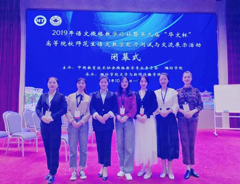 10月11日至14日,由中国教育技术微格教学专业委员会和潍坊公司共同主办的第九届“华文杯”语文师范生教学能力测试与交流展示活动在潍坊公司举行,共有来自全国95所院校的498名员工参赛。伟德国际bevictor1949派出由7名员工组成的代表队参加比赛。