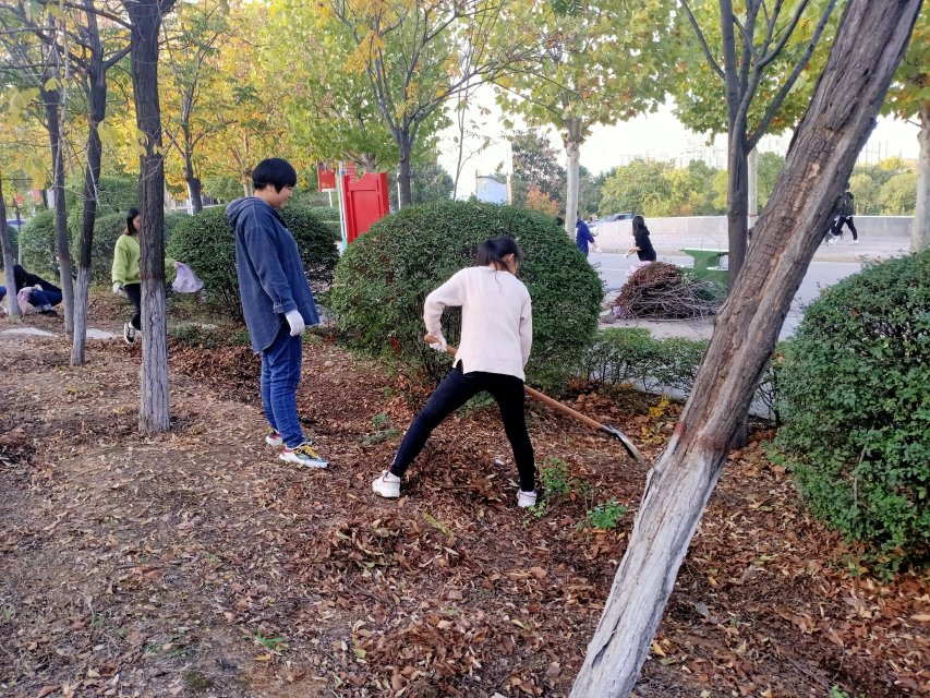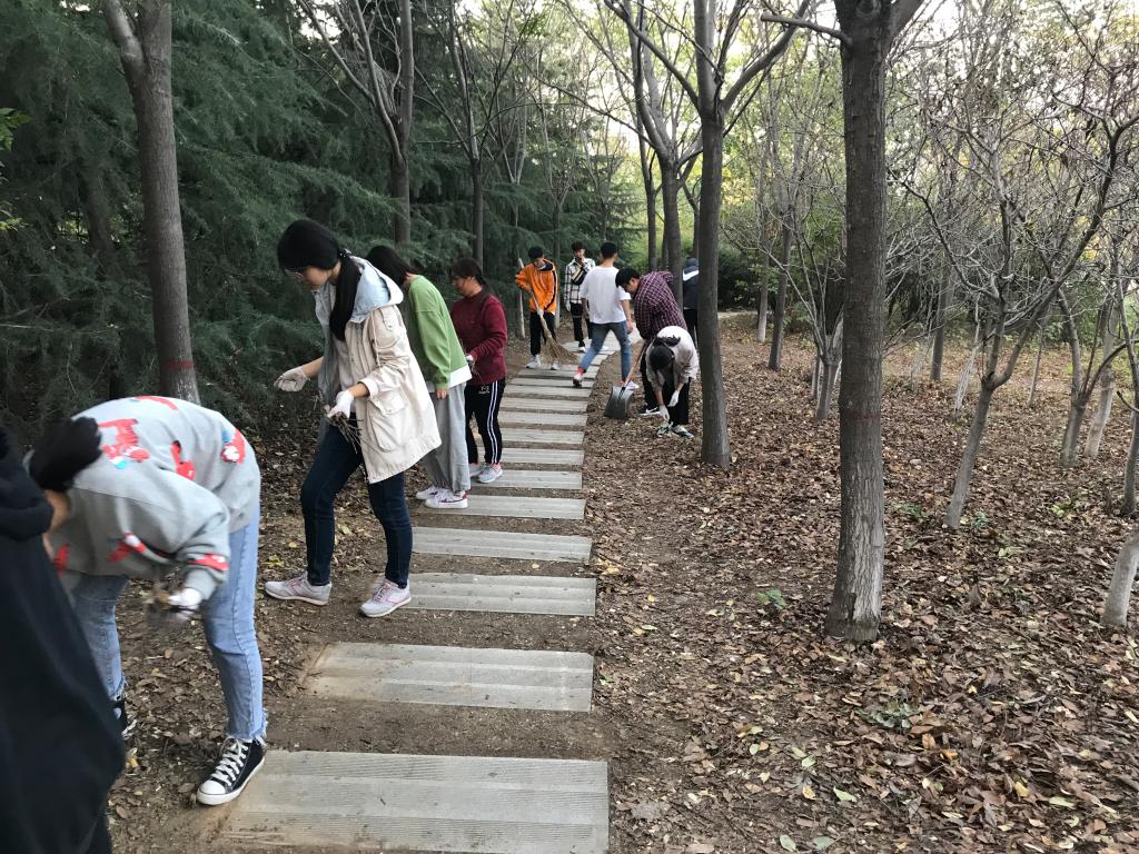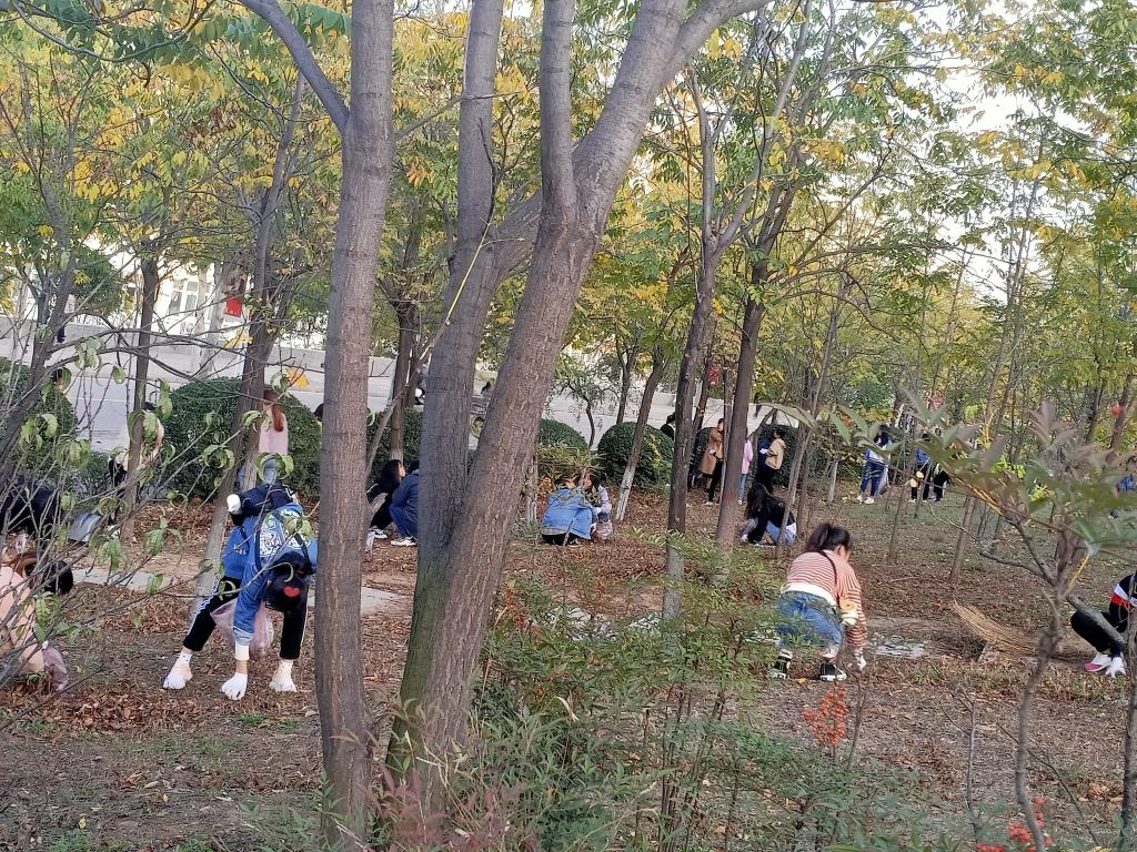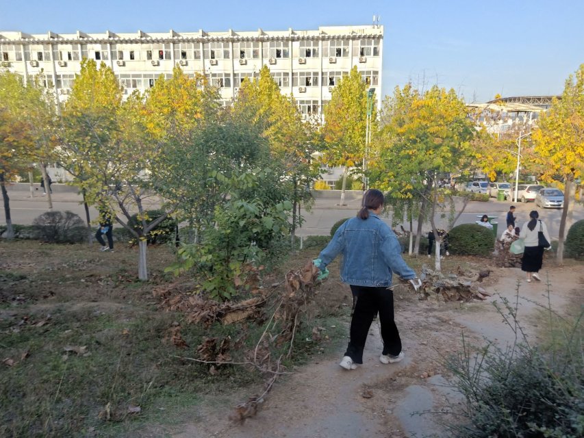 活动伊始,负责人分配好志愿者小组,按小组领取劳动工具,划分清扫区域,由工作人员带领志愿者们到指定位置进行清扫。活动过程中,志愿者们在道路和树林的角落里穿梭,手拿灰斗、扫帚和垃圾钳清理校园垃圾死角,尽管戴着手套,但绿化带中的一根根枯树枝还是扎破了她们的手指,她们干劲十足。尽管灰土弥漫,但志愿者们不嫌脏、不退缩,从塑料袋、杂草、纸屑、碎石块到建筑垃圾等都认真细致地进行了打扫清除。