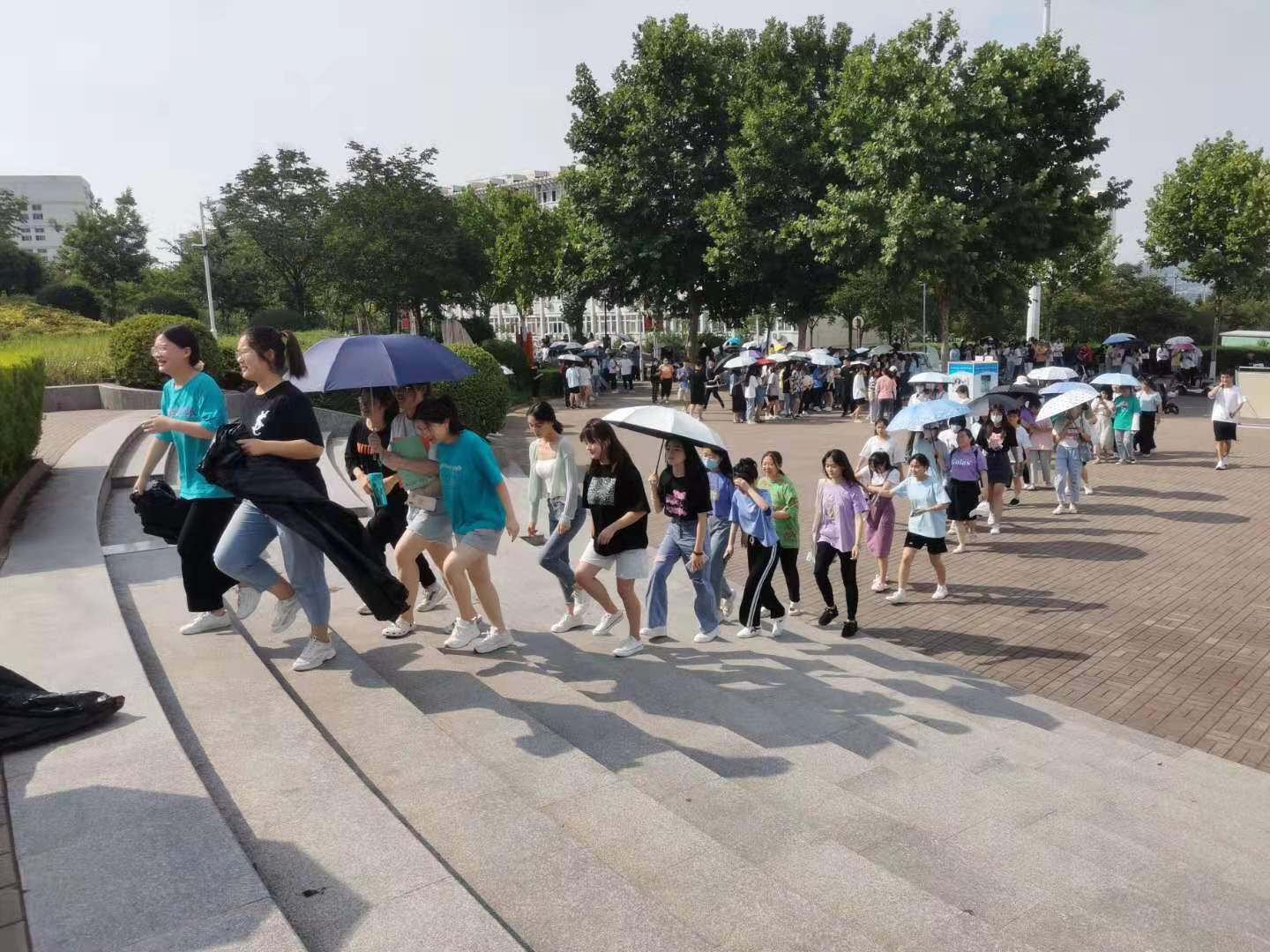 活动中,老师的带领下同学们自发拿着劳动工具和准备好的垃圾袋,在炎炎烈日下,到教学楼、绿化区、活动场地等地,打扫和清理校园。