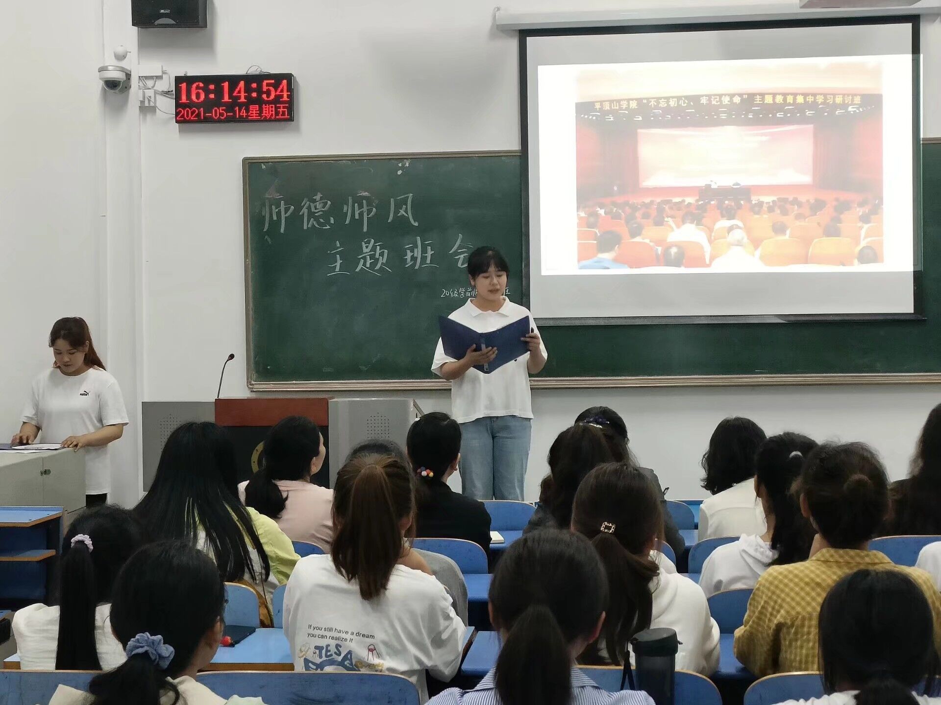 为切实加强对师范生的师德养成教育,着力培育师范生的职业认同和社会责任感。伟德国际bevictor1949于5月14日下午召开“秉承立德树人使命,提升师德师风素养”主题班会,伟德国际bevictor1949副董事长程永华、公司领导教师代表、20级学前(中外)2班全体同学参加本次班会。