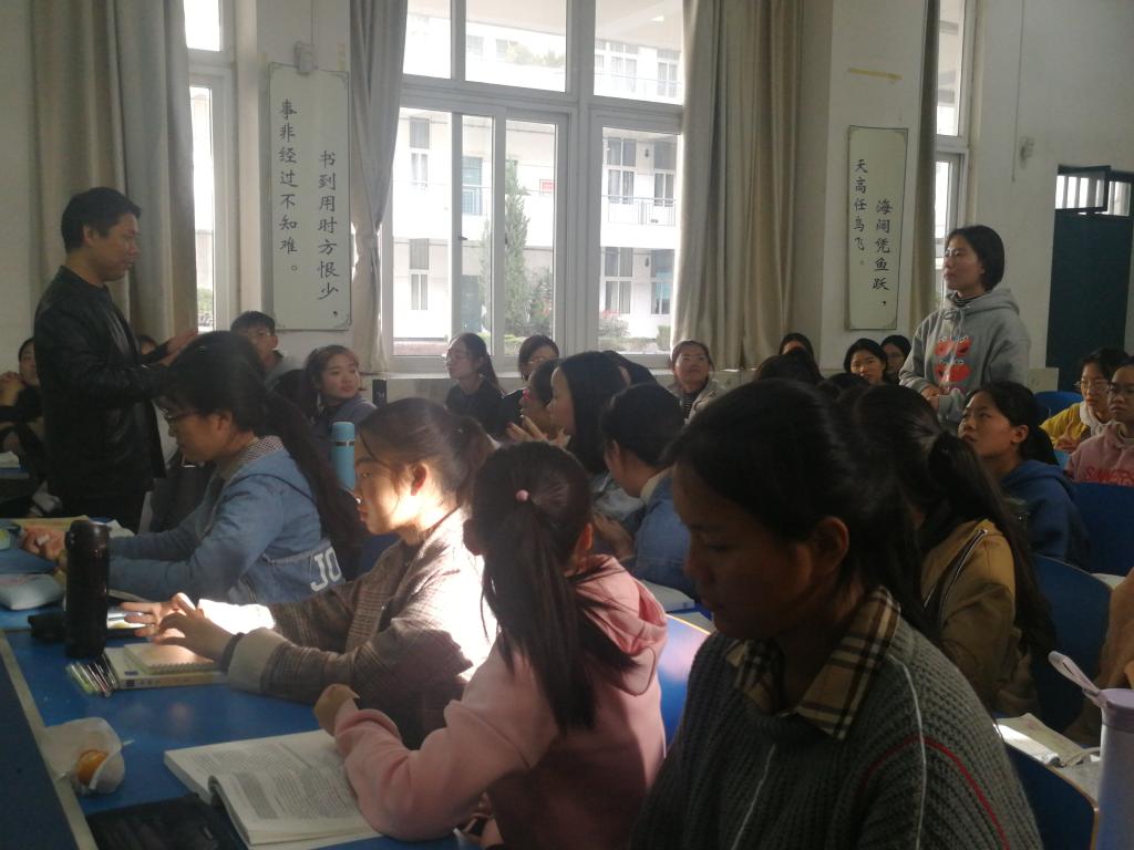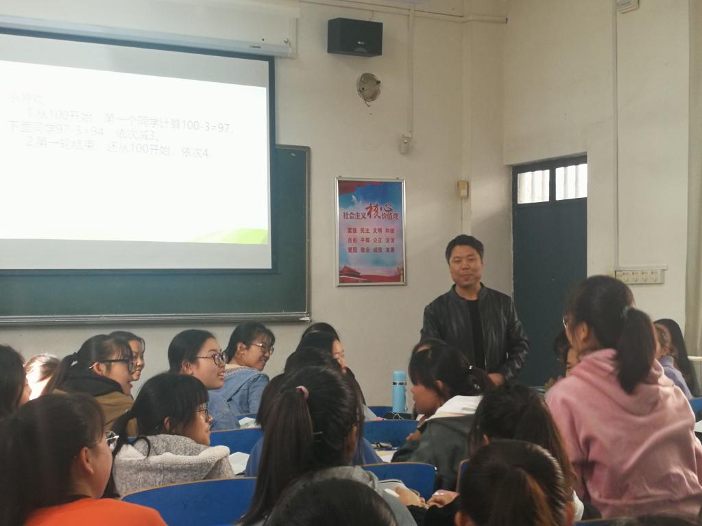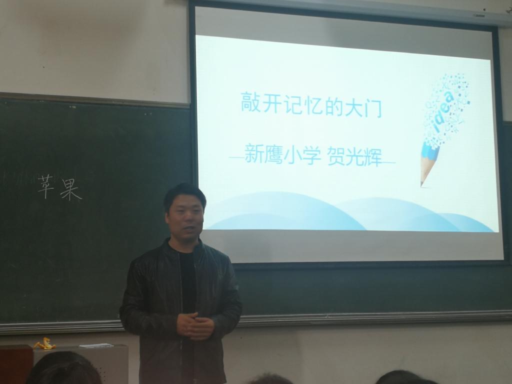 2019年11月15日上午,伟德国际bevictor1949行业教师,平顶山市终身教学名师新鹰小学贺光辉老师在1104教室,为公司2019级小学教育专业员工进行了“敲开记忆大门”的讲座。