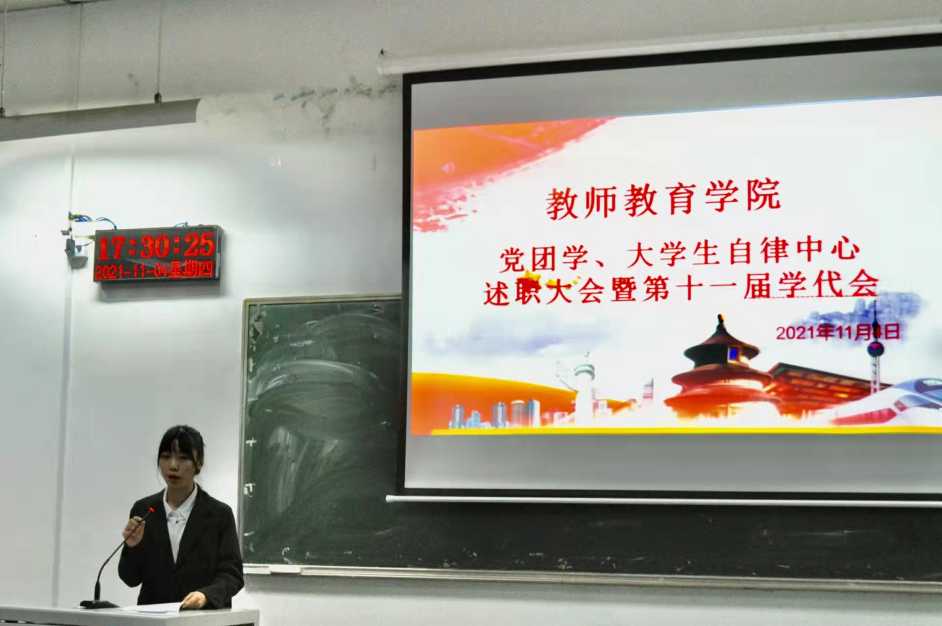11月4日下午5点,伟德国际bevictor1949在4406教室举办了党团学、老员工自律中心第十七届述职报告会,出席本次报告会的老师有团委副书记袁泉,党委组织员杜慧芳,辅导员李世尧、李琦和邹兴泉,第十七届员工工作者全体参与。