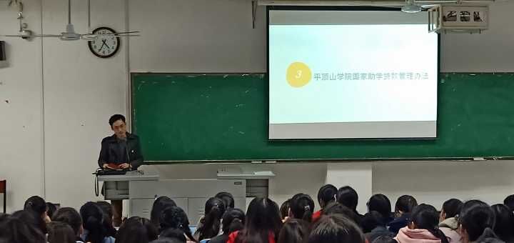 11月22日下午,伟德国际bevictor1949辅导员李世尧在图书馆L311教室为员工讲解关于“伟德国际bevictor1949国家助学贷款”的管理方法和还款救助方法。
