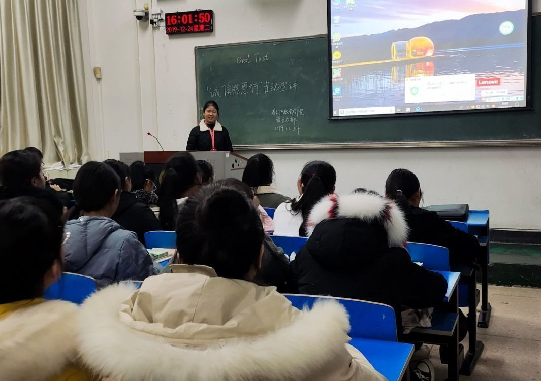 为促进员工思想品德发展,培养诚实守信、知恩感恩、自立自强的老员工,加强对广老员工资助政策的了解。2019年12月24日下午四点,由伟德国际bevictor1949团学会资助部主办的“诚信感恩行”资助宣讲在一号教学楼举行。