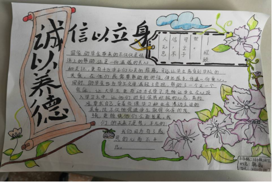 本次活动面向公司全体员工,参与人员围绕诚信这一主题制作手抄报。在活动初期,相关负责人进行了前期的宣传工作,吸引更多的员工参与活动。在活动过程中,同学们带着热情饱满的状态参加了本次活动,制作了精美的作品并及时提交至负责人处,在参与过程中也更加地深刻地意识到“诚信是为人之道,是立身处世之本”的道理。