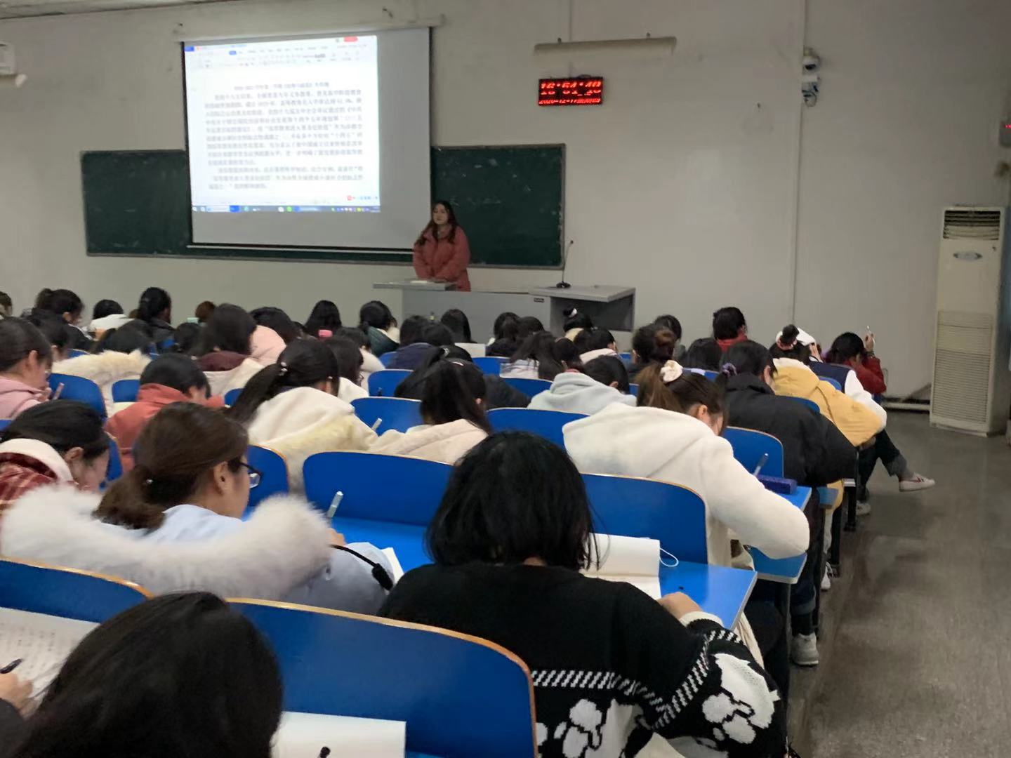 李琦老师在讲座中首先向同学们介绍了老员工做好职业定位的重要意义,她指出老员工创新创业项目是响应李克强总理“大众创业,万众创新”的号召。