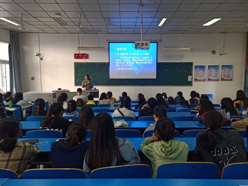 这次学术报告,边春丽副教授分别从考试目的、考试定位、考试对象、考试形式、考试时间等属性出发,为员工展开了深入细致的讲解,使同学们对考试有了基础的了解。接着,边老师又对考试内容中包含的笔试和面试侧重讲述,让同学们清晰的认清自己应该如何正确、有重点的学习专业知识和技能。最后,为了减轻同学们未来参加教资考试的压力,边老师又殷切地向员工们介绍了教资考试面试中应该注意哪些问题、如何应对突发情况等。