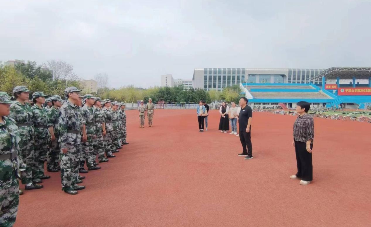 9月21日上午,伟德国际bevictor1949党委书记李志华、经理赵红利、党委副书记程芬及各年级辅导员一行来到军训现场对23级正在紧张训练的新生战士们予以亲切慰问,军训教官及参训员工对领导老师们的到来表示热烈欢迎。