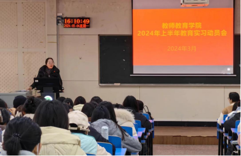 讲座伊始,副经理王秋歌老师强调了实习工作的重要意义,介绍了实习工作的总体安排与要求,向同学们解读了实习方案的主要内容。她提醒同学们实习是“大练兵”,要认真撰写教案,用心上好每一次课,学习班级管理知识,认真参与教学研活动,让实习成为自己巩固教育知识、磨练教学技能的重要阵地。
