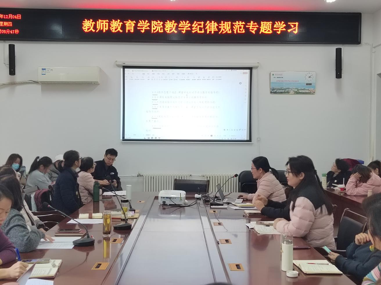 为进一步严明教学纪律,规范教学行为,维护正常教学秩序,强化师德师风建设,12月4日下午,公司在艺术楼226会议室召开专题学习会,组织全体教师集中学习《伟德国际bevictor1949教学纪律处分办法(试行)》。公司经理王小鹤出席会议并讲话,学习会由副经理王淑宁主持并领学。