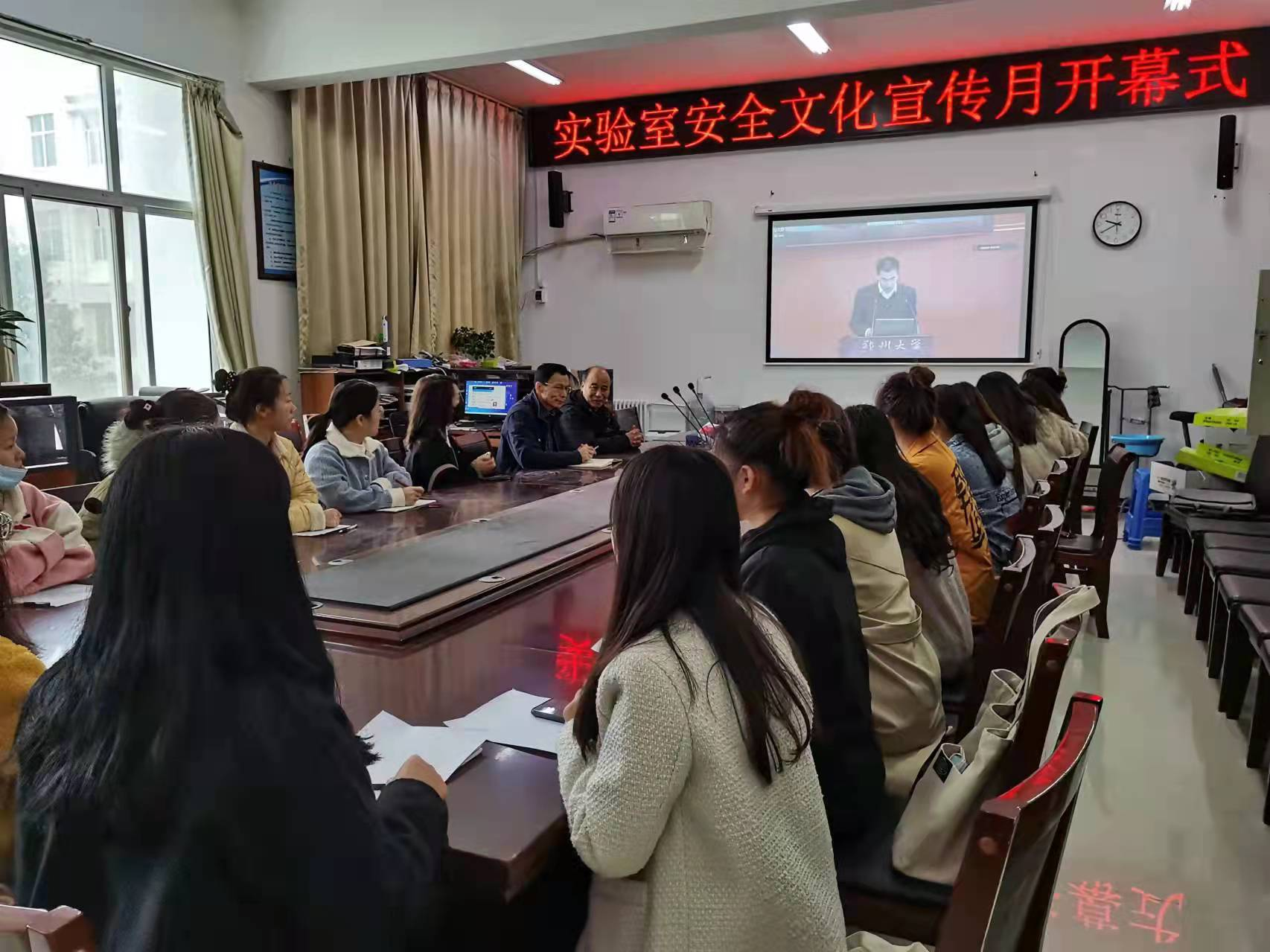为了贯彻习近平总书记的实验室安全的重要论述,切实加强公司实验室安全管理,努力营造和谐校园环境,按照河南省高校实验室工作研究部署,开展为期一个月的安全文化宣传活动,主会场在郑州大学举行,伟德国际bevictor1949党委书记和主管实验室的副经理组织师生20余人在A226共同收看了开幕式。