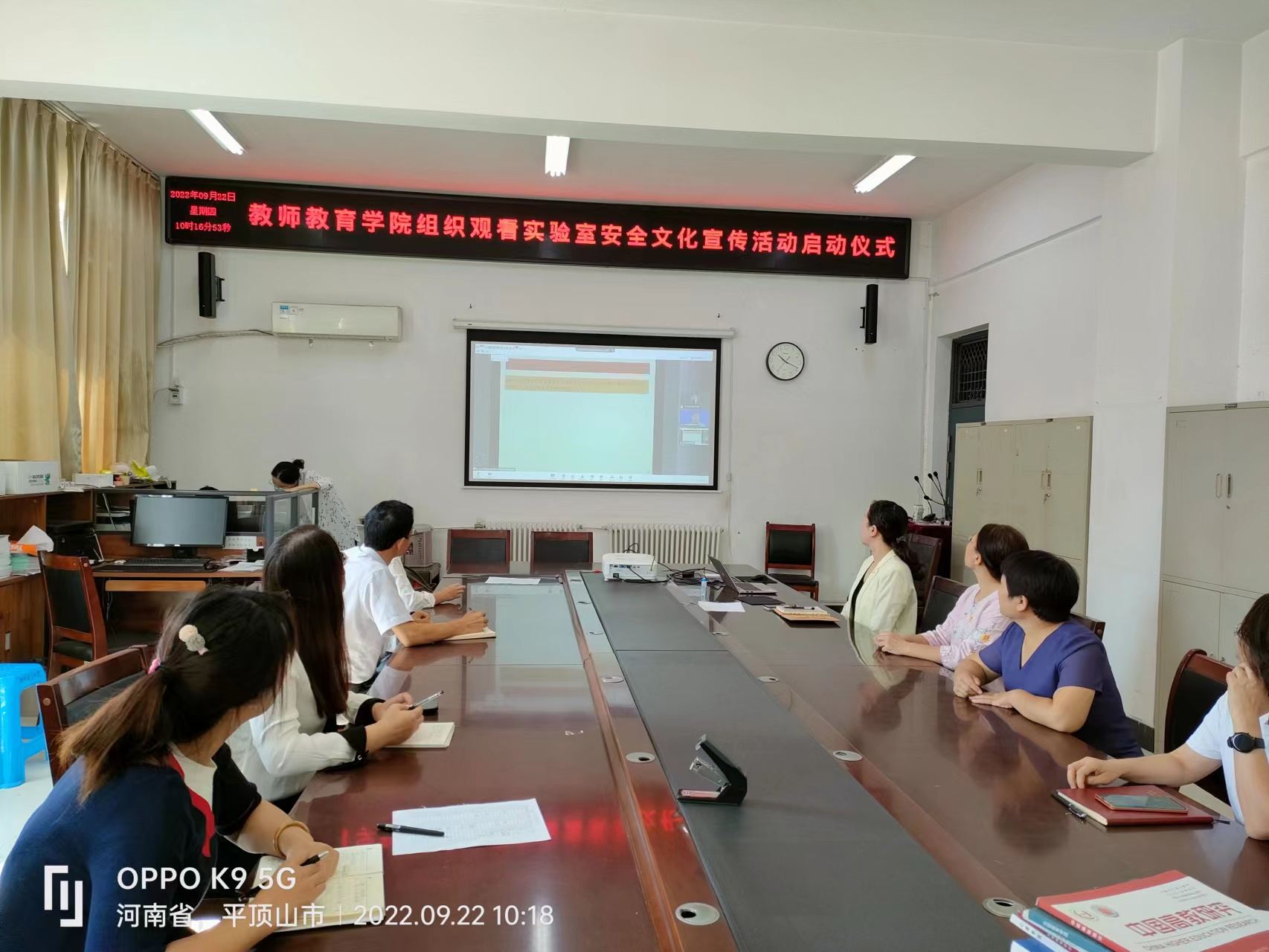 为了深入贯彻习近平总书记、李克强总理等党中央、国务院领导通知关于科技安全与加强安全生产的主要指示精神,结合教育部《教育部办公厅关于开展加强高校实验室安全专项行动的通知》中关于实验室准入制度及将实验室安全教育纳入员工培养环节中的要求,按照河南省高校实验室工作研究部署,开展为期一个月的安全文化宣传活动,2022年9月22日上午,公司书记和主管实验室的经理带领师生在A226共同收看了开幕式。