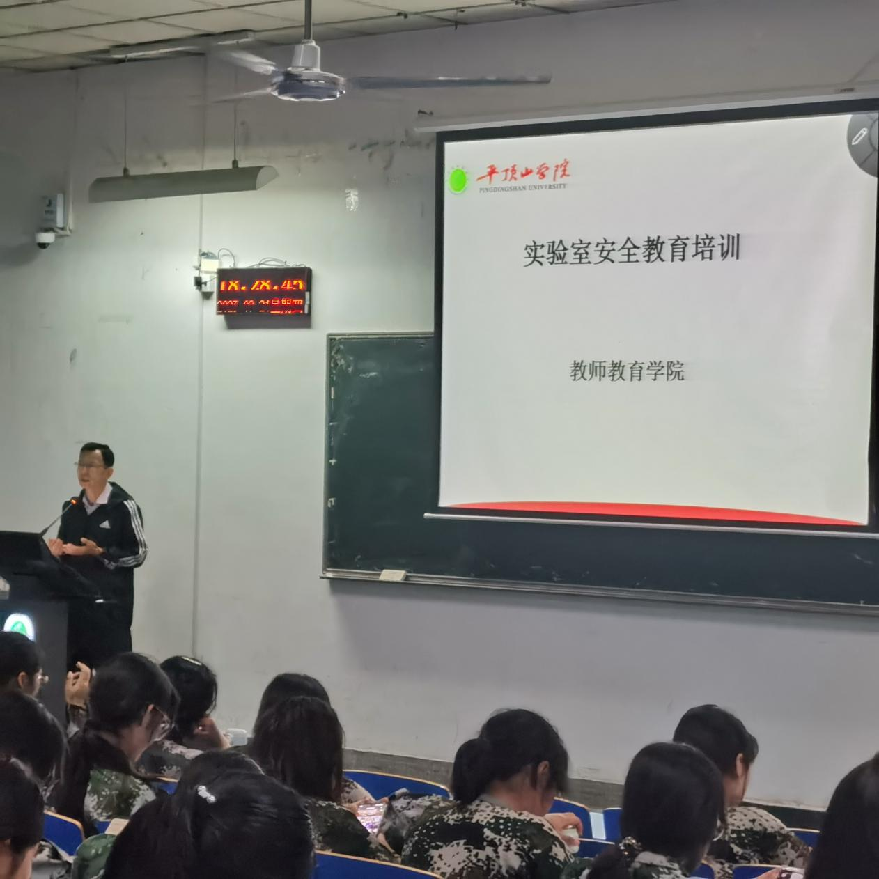 2023年9月21日晚上,公司副经理王小宁老师在4号教学楼4406教室以“生命之上,安全第一”安全教育主题为2023级员工做实验室安全教育培训。